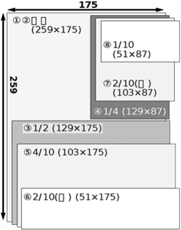 | ⑧ | 白黒 | 1 / 10 ページ | 51 × 87 | 10,000円 |