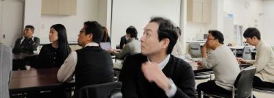 15:00 〜 17:00 [総会関連報告] 40期の紺野さんが実施報告、手前は41期の皆さん、中のテーブルは42期の幹事さん