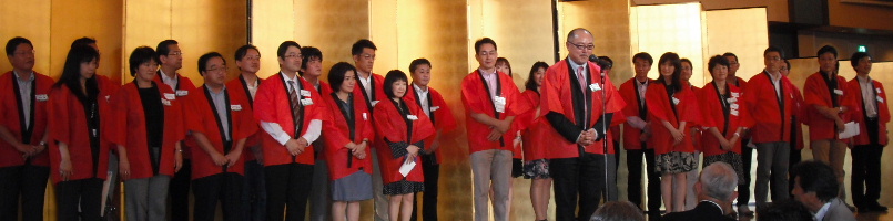 ![]() 33期の幹事の皆さんが赤いハッピでお出迎え・・・ |